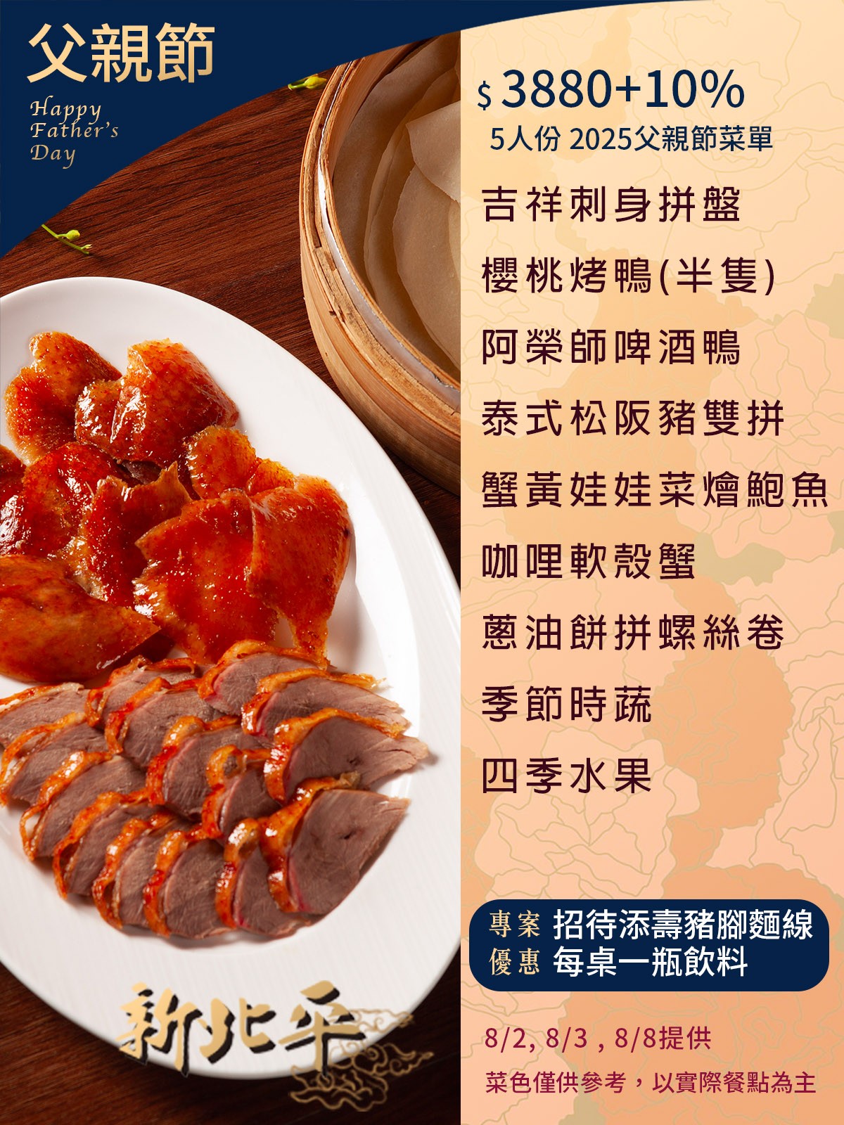 今年父親節,帶爸爸來新北平,吃他最熟悉的味道,聊你最想說的話。
